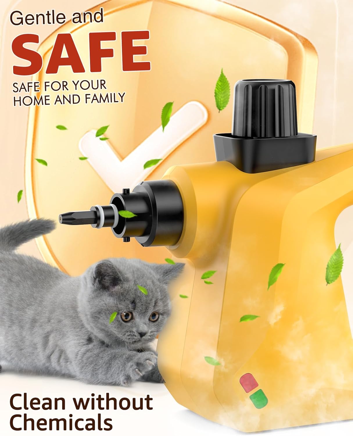 - ๐๐๐๐ ๐๐๐ซ๐: No need to worry about safety hazards! DynVapor handheld steam cleaner for home is equipped with a safety lock and chemical-free, generating powerful natural steam using only water. Whether the handheld steamer is for children or pets, DynVapor handheld steam cleaner provides careful protection. It also includes anti-dry burn safety protectionโwhen the water runs out, it automatically shuts off the power to prevent fires