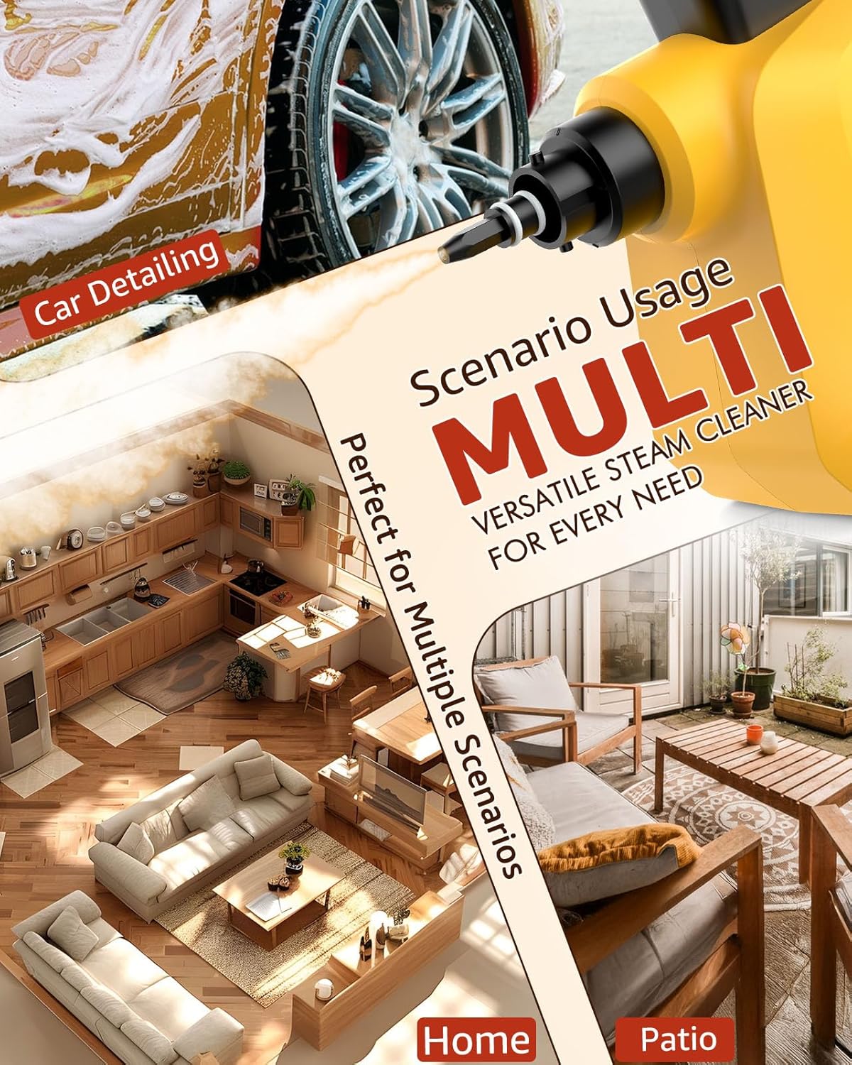 - ๐๐ฎ๐ฅ๐ญ๐ข-๐๐ฎ๐ซ๐๐๐๐ ๐๐ฅ๐๐๐ง๐ข๐ง๐ : Replace all your cleaning tools! Not just for cleaning countertops, DynVapor portable car steam cleaner for home is also perfect for a wide range of surfacesโwooden floors, tiles, curtains, sofas, furniture, clothes and car interiors. DynVapor handheld steamer cleaning tools for home easily handles large areas, tight corners and hard-to-reach gaps. Ensuring a thorough clean without missing any spots, making cleaning a fun task