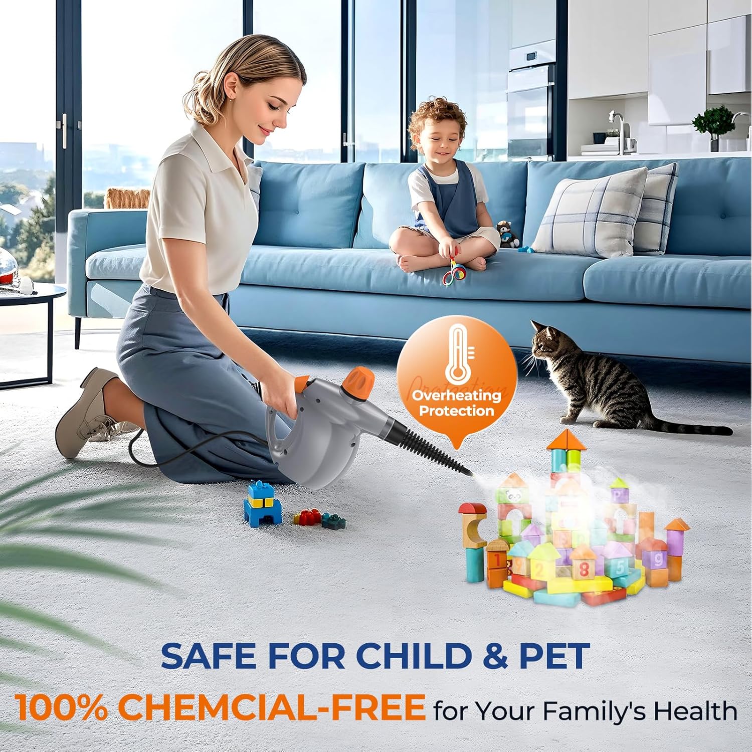 - CHEMICAL-FREE & CHILD/PET SAFE: Add water to harness steam for sanitizing surfaces without harsh chemicals; Worry-free cleaning around kids, pets, and on delicate fabrics, giving you extra peace of mind while cleaning