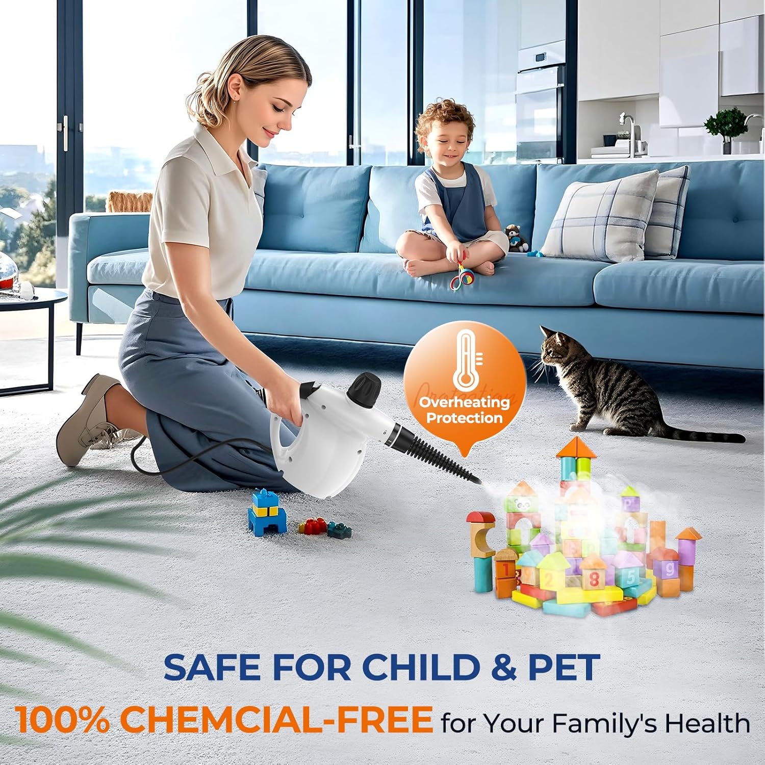 - CHEMICAL-FREE & CHILD/PET SAFE: Add water to harness steam for sanitizing surfaces without harsh chemicals; Worry-free cleaning around kids, pets, and on delicate fabrics, giving you extra peace of mind while cleaning